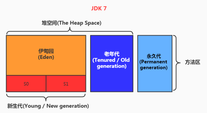 HotSpot中方法区在JDK1.7及以前,习惯上把方法区,称为永久代。jdk8开始,使用元空间取代了永久代。