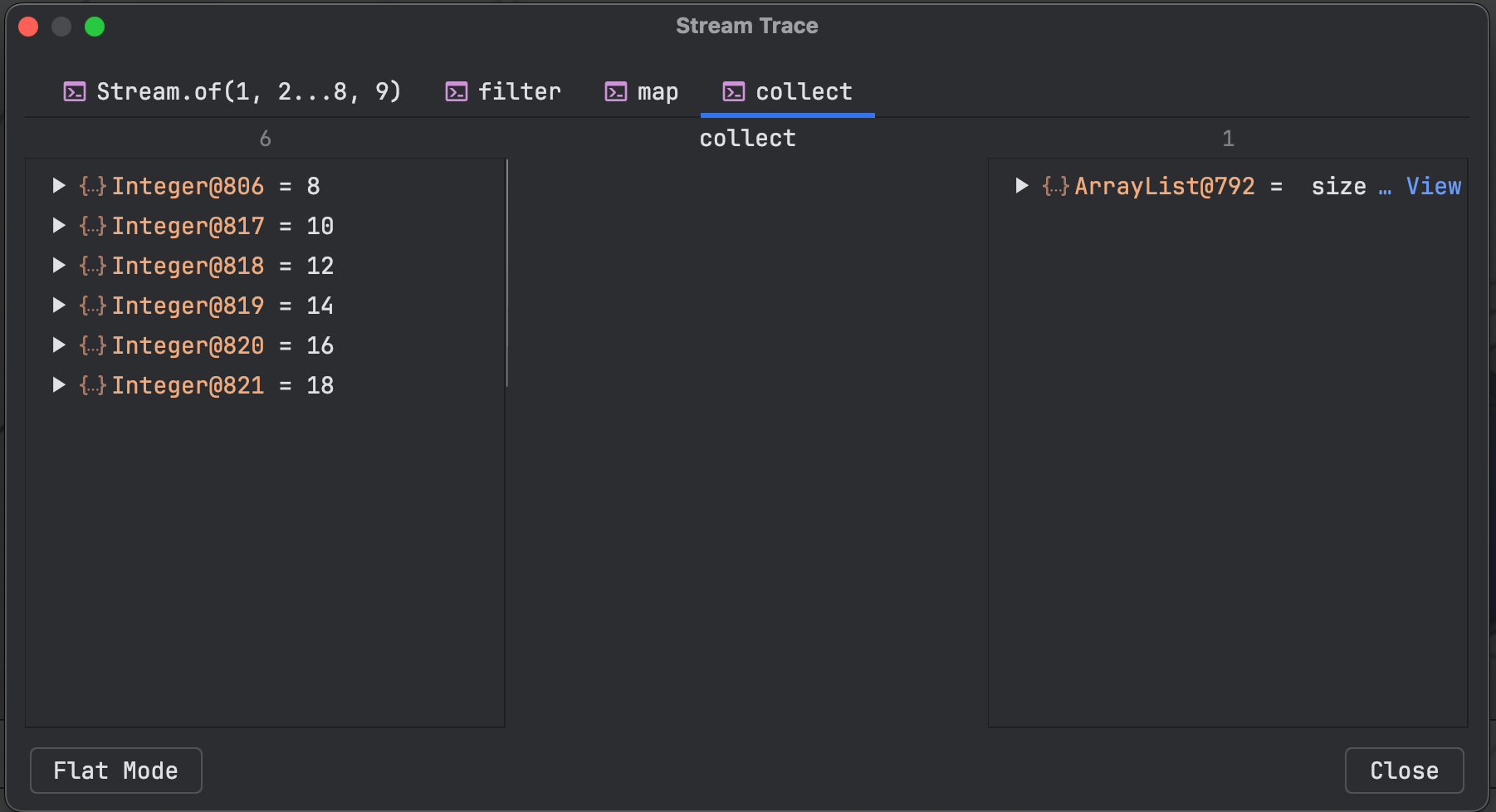用来调试stream流的工具。断点停到对应的位置后,点一下就可以显示出调试面板